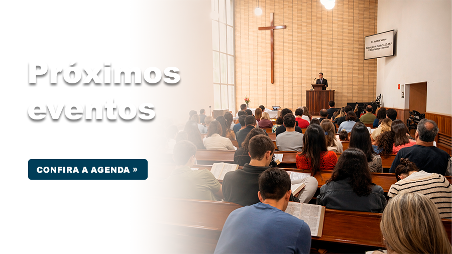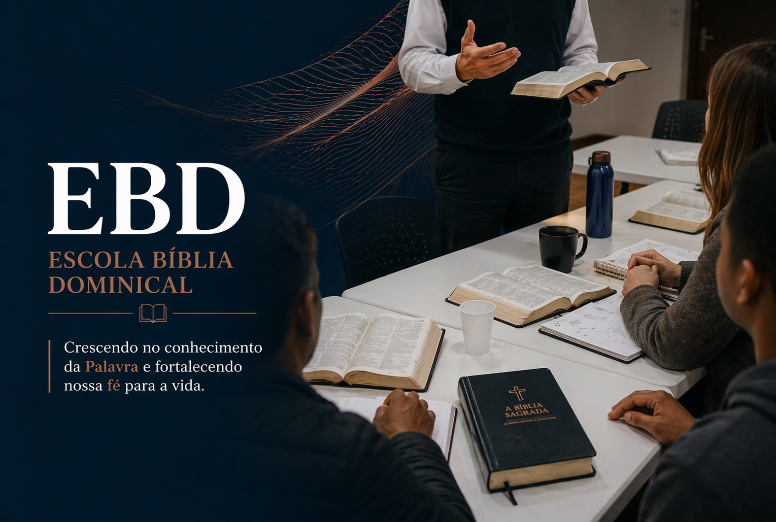 Todo Domingo às 9h Escola Bíblica Dominical (EBD) e às 10h30 Culto Público Dominical